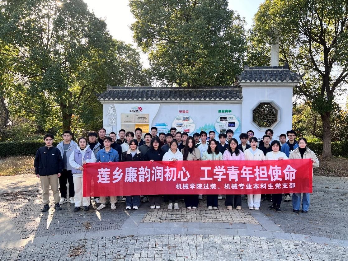 为深化师德师风建设,筑牢党员廉洁思想根基,11月26日下午,机械学院过装、机械专业本科生党支部赴南京市浦口区“西埂莲乡”廉政教育基地,开展“莲乡廉韵润初心,工学青年担使命”主题党日活动。