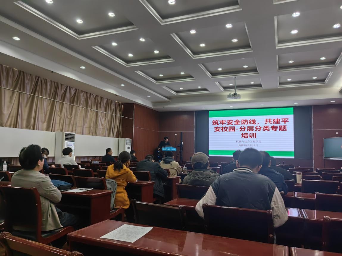 2025年12月2日下午,机械学院联合实验室建设与管理处,保卫处等部门,在崇德E楼四楼报告厅组织开展分层分类专题安全培训会议,学院党政负责人、实验室建设与管理处李强老师,保卫处周子皓老师,南京安民消防高级教员、学院安全员、安全责任人以及进入实验室的学生代表参加培训。