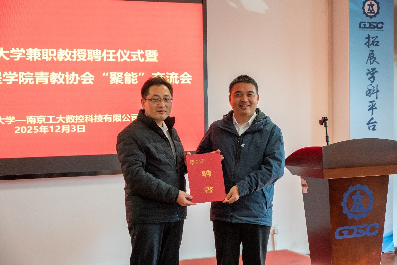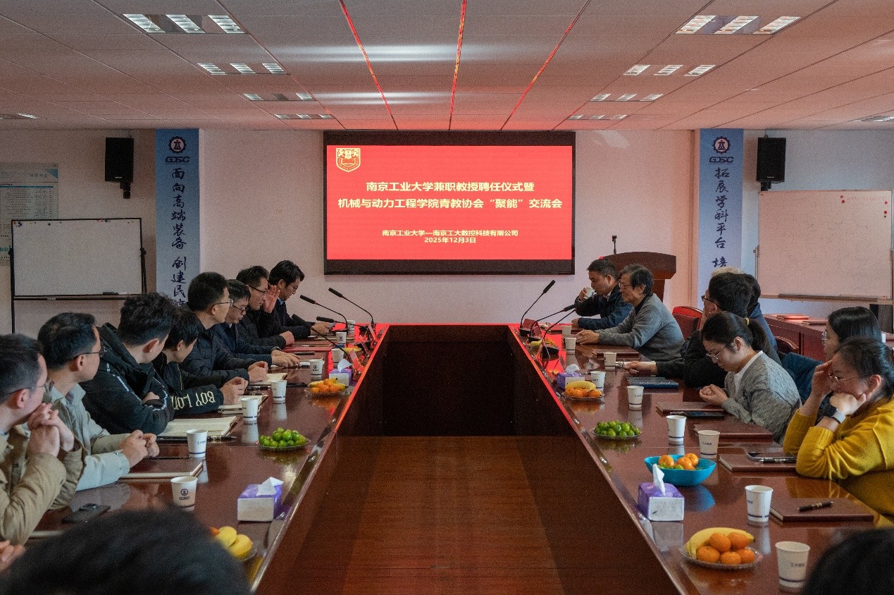 12月3日下午,南京工业大学兼职教授聘任仪式暨机械学院青教协会“聚能”交流会在南京工大数控科技有限公司成功举办。学校党委教师工作部副部长、人事处副处长杨洪俊,南京工大数控总经理于春建、副总经理崔君君、总工艺师张虎,机械学院党委书记蒋远喜、副院长王华、黄筱调教授、洪荣晶教授以及机械学院青教协会的青年教师代表等出席活动,会议由蒋远喜书记主持。