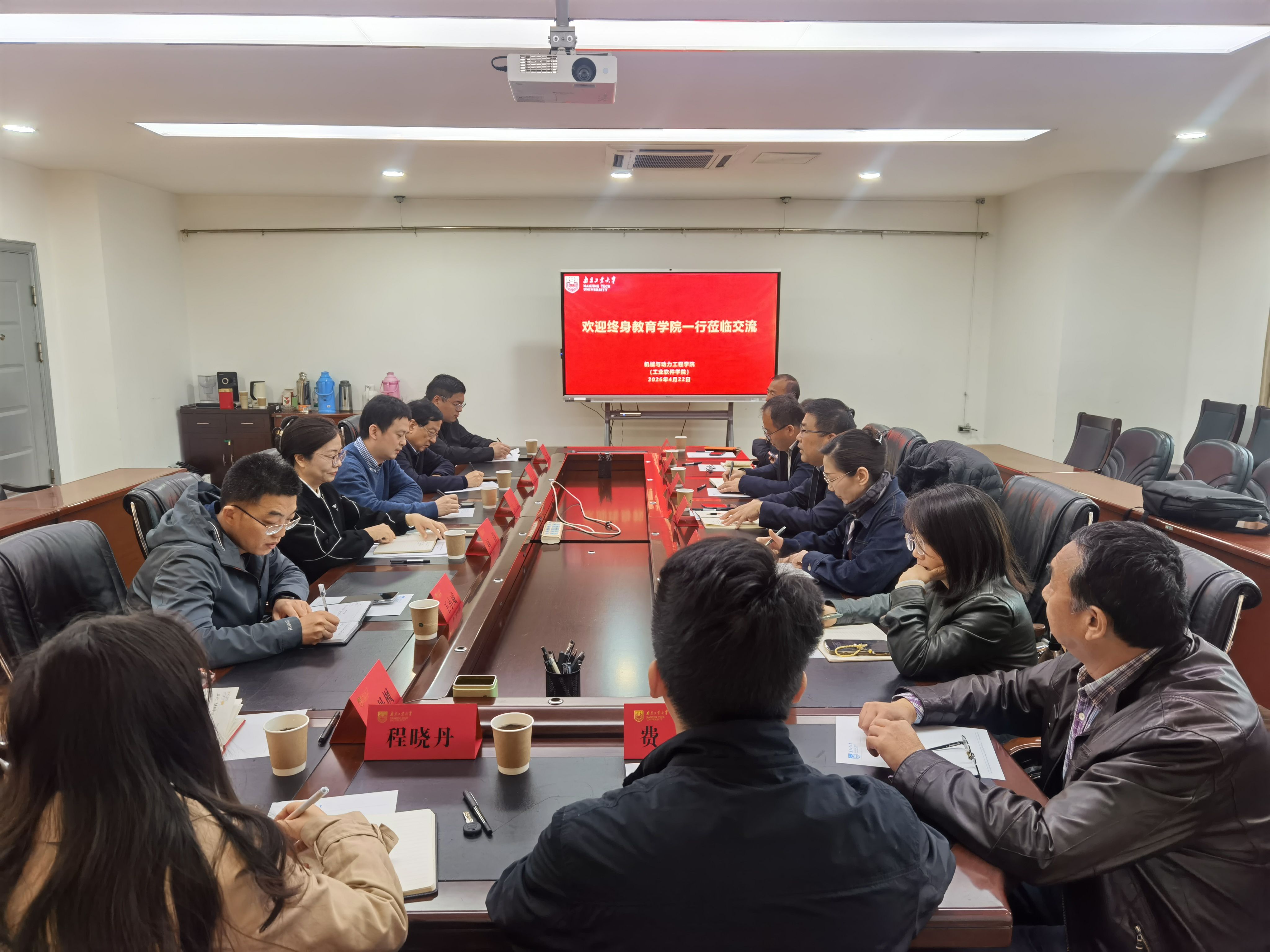 为深化院系协同,拓宽培训合作渠道,凝聚高质量建设合力,4月22日上午,我校终身教育学院院长张涛带队来我院进行交流座谈,就相关培训合作项目、特种设备学院建设等主题展开交流。我院党委书记周静、院长彭浩及相关教师参加座谈会。